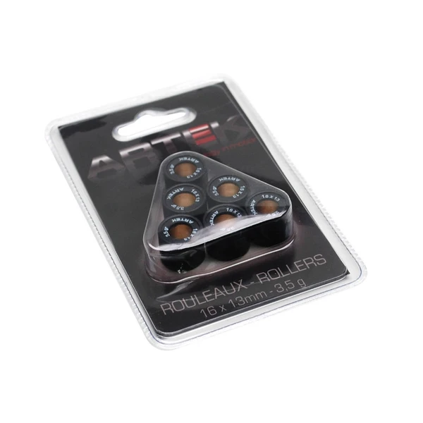 GALET-ROULEAU Artek 16X13 8,5g (x6) pour Peugeot 50 Kisbee, TKR, Trekker, Speedfight, Buxy, Vivacity / Piaggio 50 Zip, Typhoon, NRG 1994>1999 / Kymco 50 Dink, People, Top-Boy