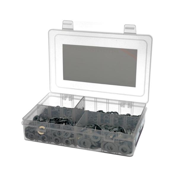 Rondelles plates adaptable acier assorties diamètres 5 - 6 - 8 - 10mm boîte de 1550 pièces