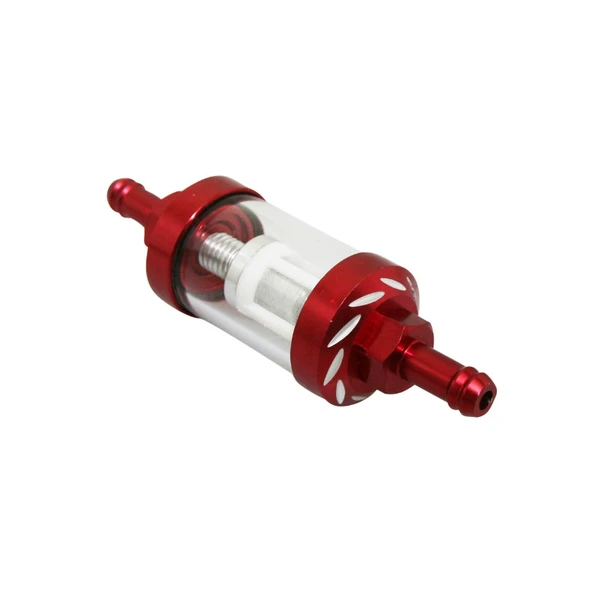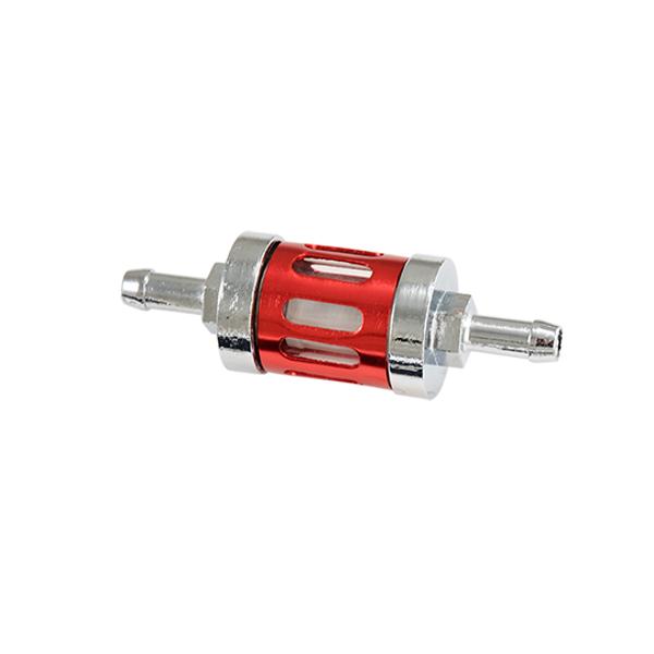 Filtre à essence adaptable cylindrique ajouré en aluminium rouge diamètre 8 mm
